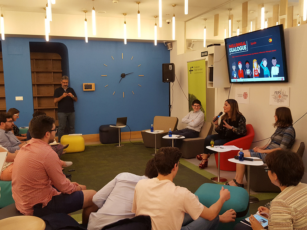 La Fundación Felipe González, junto a la FEPS y el Center for American Progress, ha presentado los resultados del informe Millennial Dialogue Spain en la Residencia Universitaria Claudio Coello. En el acto, que ha contado con la participación de Ernst Stetter, secretario general de la FEPS; Rocío Martínez-Sampere, directora de la Fundación Felipe González; Lucía González, editora jefe de Verne.es (EL PAÍS); y Santiago Castelo, coordinador del equipo investigador de «Millennials en Latinoamérica», se han resumido algunos de los llamativos datos que arroja el informe.